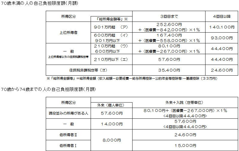 また、直近12カ月以内に限度額に達する月が3回以上あれば、4回目からは更に限度額が下がる多数該当制度というものもあります。