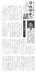 「関節リウマチ除外後の関節痛に対するアグリコン型イソフラボン (へバスター) の効果の検討 日本リウマチ学会(2021)で院長が発表」はこちら