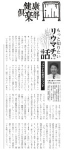財界さっぽろ7月号から、院長によるコラムが始まりました。第1回はリウマチの症状についてわかりやすく解説しております。